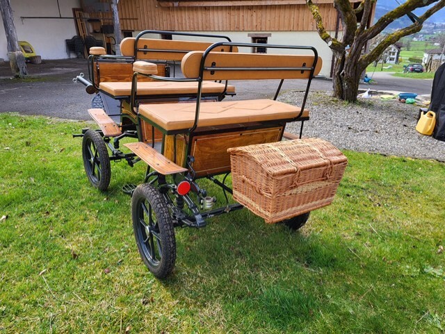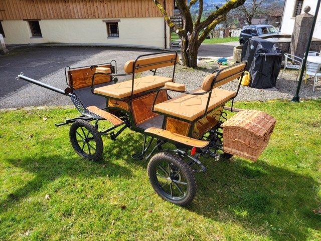 2 Kutschen (1 Wagonette, 1 Jagdwagen), die mit Barockeseln 2-spännig einige Male gefahren wurden, stehen in der Schweiz zum Verkauf. Bei Interesse kann der Verein die Zollformalitäten und den Transport organisieren.