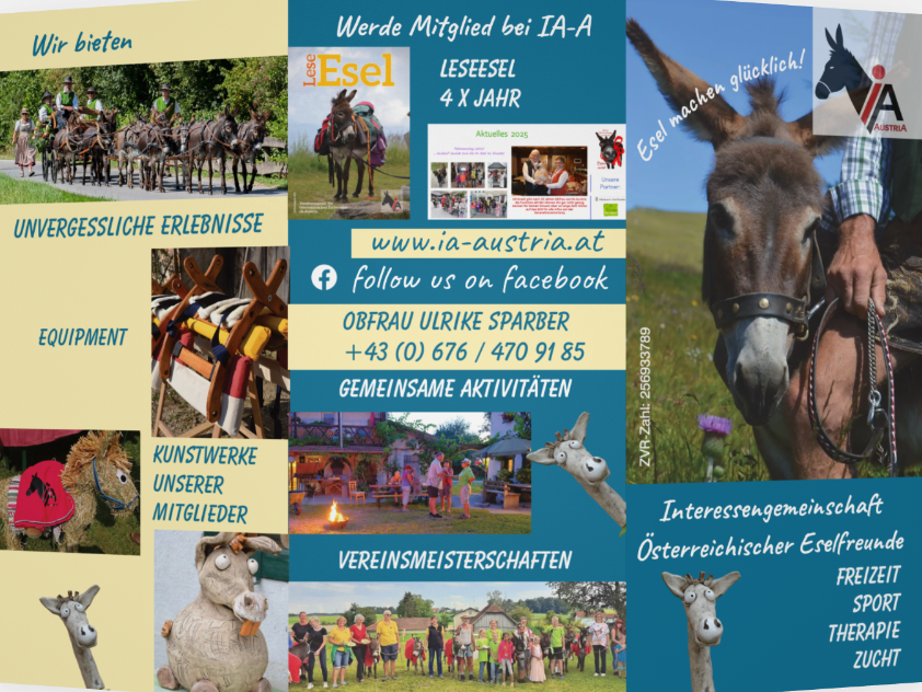 * Du erhältst den LeseEsel 4-mal im Jahr, jeweils im März, Juni, September und Dezember. Hier findest Du alle Termine von Vereinsveranstaltungen, Berichte von Mitgliedern, Fachartikel u. v. m. rund um den Esel.