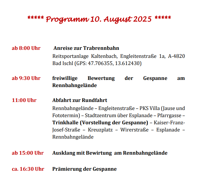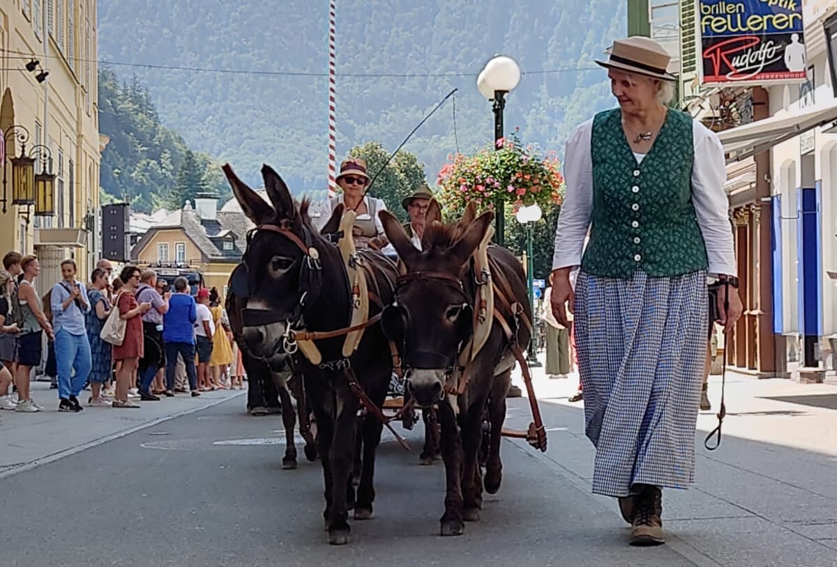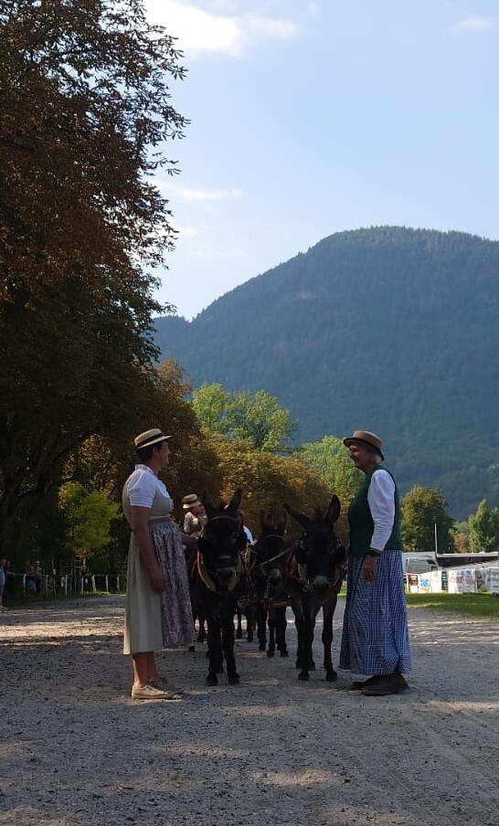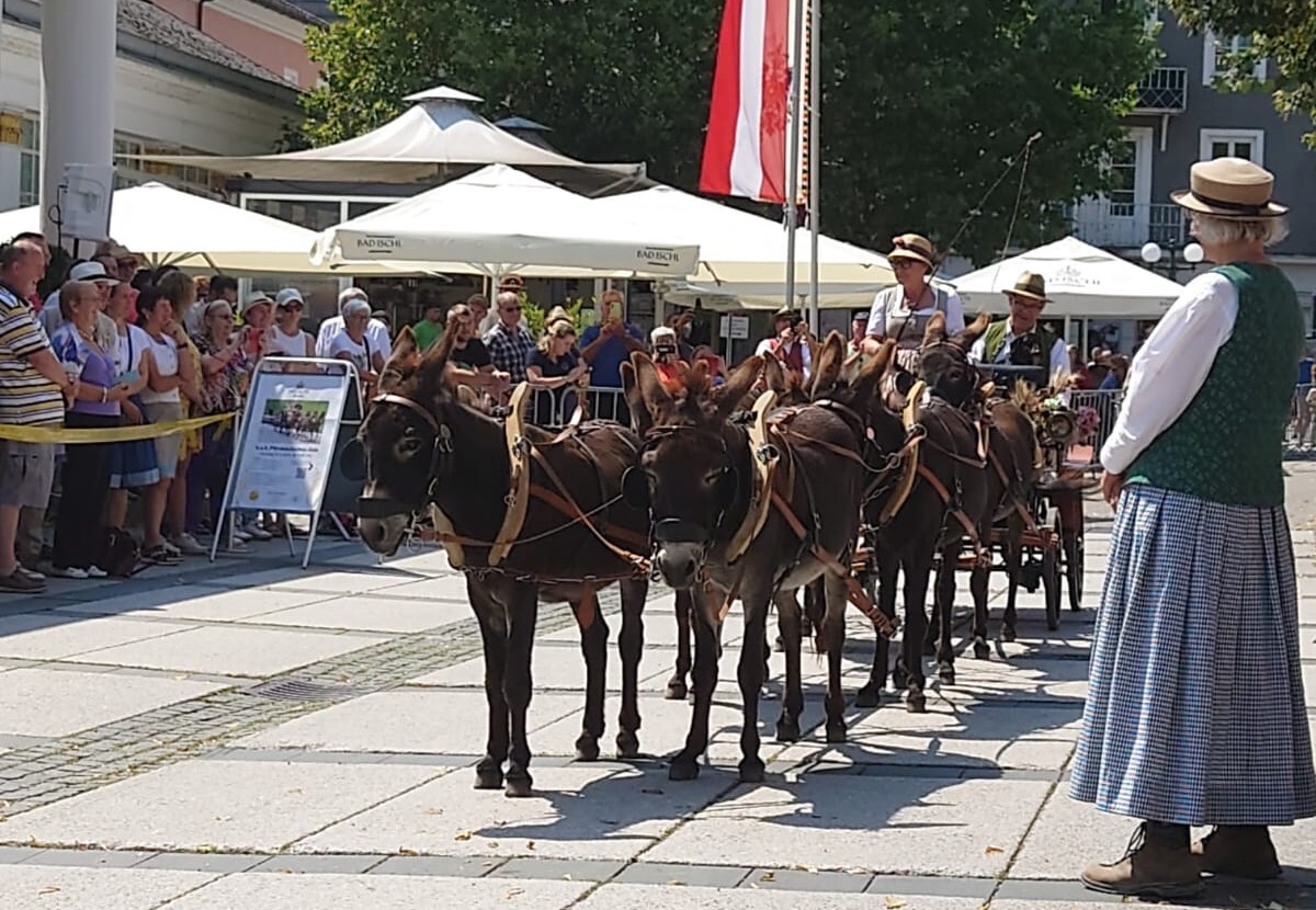 Am 10. August 2025 war IA-Austria zum ersten Mal mit einem Eselgespann in Bad Ischl bei der großen k&k Pferdekutschengala vertreten! Die Esel vom Eselhof Berndlgut haben im Sechserzug ein perfektes Bild gemacht. Das Publikum war genauso begeistert wie der fachkundige Sprecher Walter Werni und der Richter der Präsentation Georg Moser. Wieder einmal ist es gelungen, den Menschen zu zeigen, was Esel alles können - der weithin anerkannte Pferdeexperte Walter Werni hat es folgendermaßen ausgedrückt: "Esel sind, anders als Pferde, vorausdenkender, bedächtiger und haben mehr `Hufspitzengefühl´."