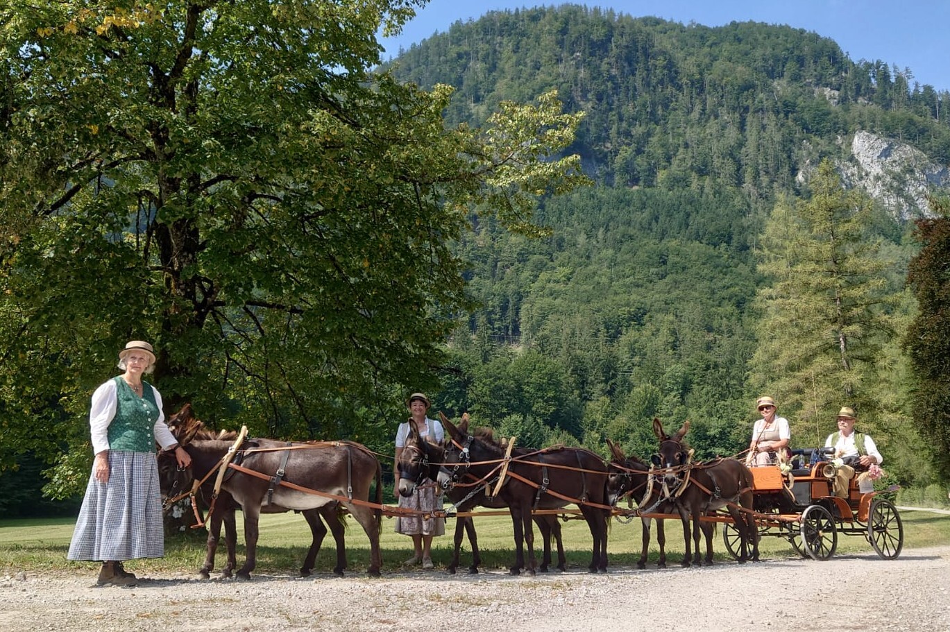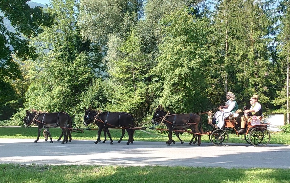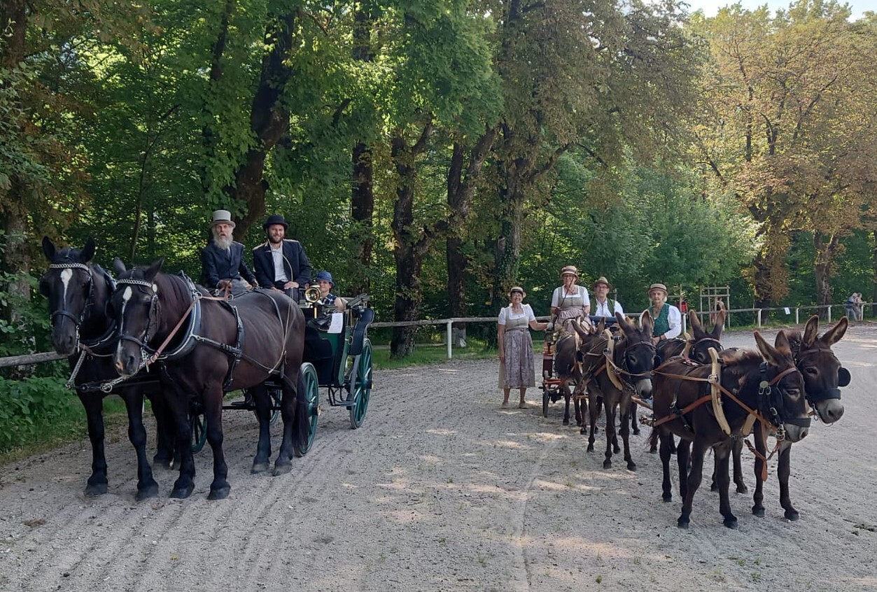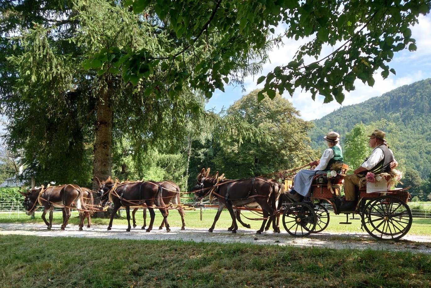 Am 10. August 2025 war IA-Austria zum ersten Mal mit einem Eselgespann in Bad Ischl bei der großen k&k Pferdekutschengala vertreten! Die Esel vom Eselhof Berndlgut haben im Sechserzug ein perfektes Bild gemacht. Das Publikum war genauso begeistert wie der fachkundige Sprecher Walter Werni und der Richter der Präsentation Georg Moser. Wieder einmal ist es gelungen, den Menschen zu zeigen, was Esel alles können - der weithin anerkannte Pferdeexperte Walter Werni hat es folgendermaßen ausgedrückt: "Esel sind, anders als Pferde, vorausdenkender, bedächtiger und haben mehr `Hufspitzengefühl´."